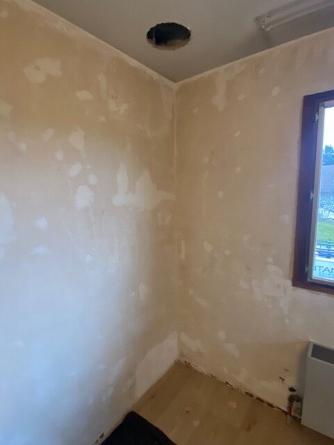 Le conduit a ensuite été prolongé à l’étage avec un dévoiement en coudes 45°, permettant de repositionner la montée et de remonter le conduit au plus haut, selon la configuration de la maison.