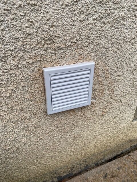 À l’extérieur, une grille blanche a été posée, et à l’intérieur un système Contura (plaque blanche avec mousse) a été installé pour une finition propre et une meilleure gestion des flux d’air.
